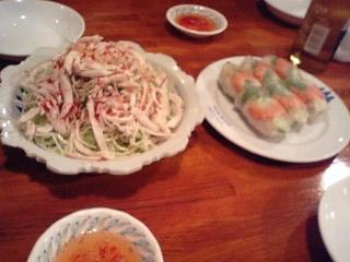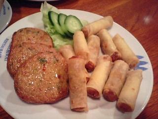 インドシナ風ハンペン?とミニ春巻きみたいなもの。ビールのつまみに丁度いい。