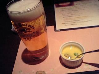 食前酒には冷静スープっぽい付け合せが付く。